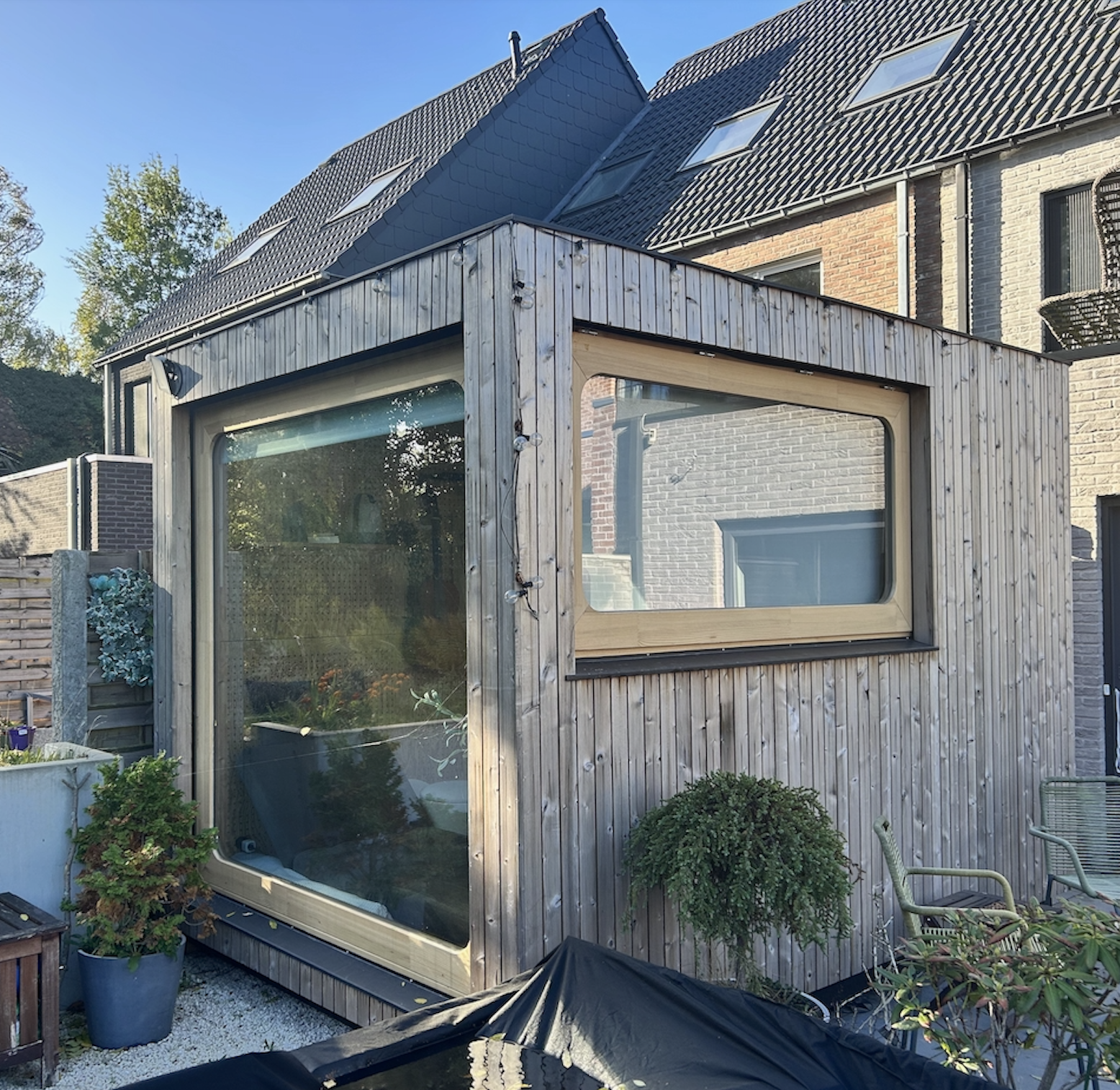 - Bardage extérieur : bois brûlé